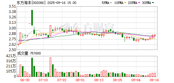 证券时报·数据宝统计显示,东方海洋今日收盘价为2.85元,上涨0.71%,日换手率为4.79%,成交额为2.15亿元,全天主力资金净流出721.06万元,近5日该股累计上涨4.40%,近5日资金合计净流入620.05万元。